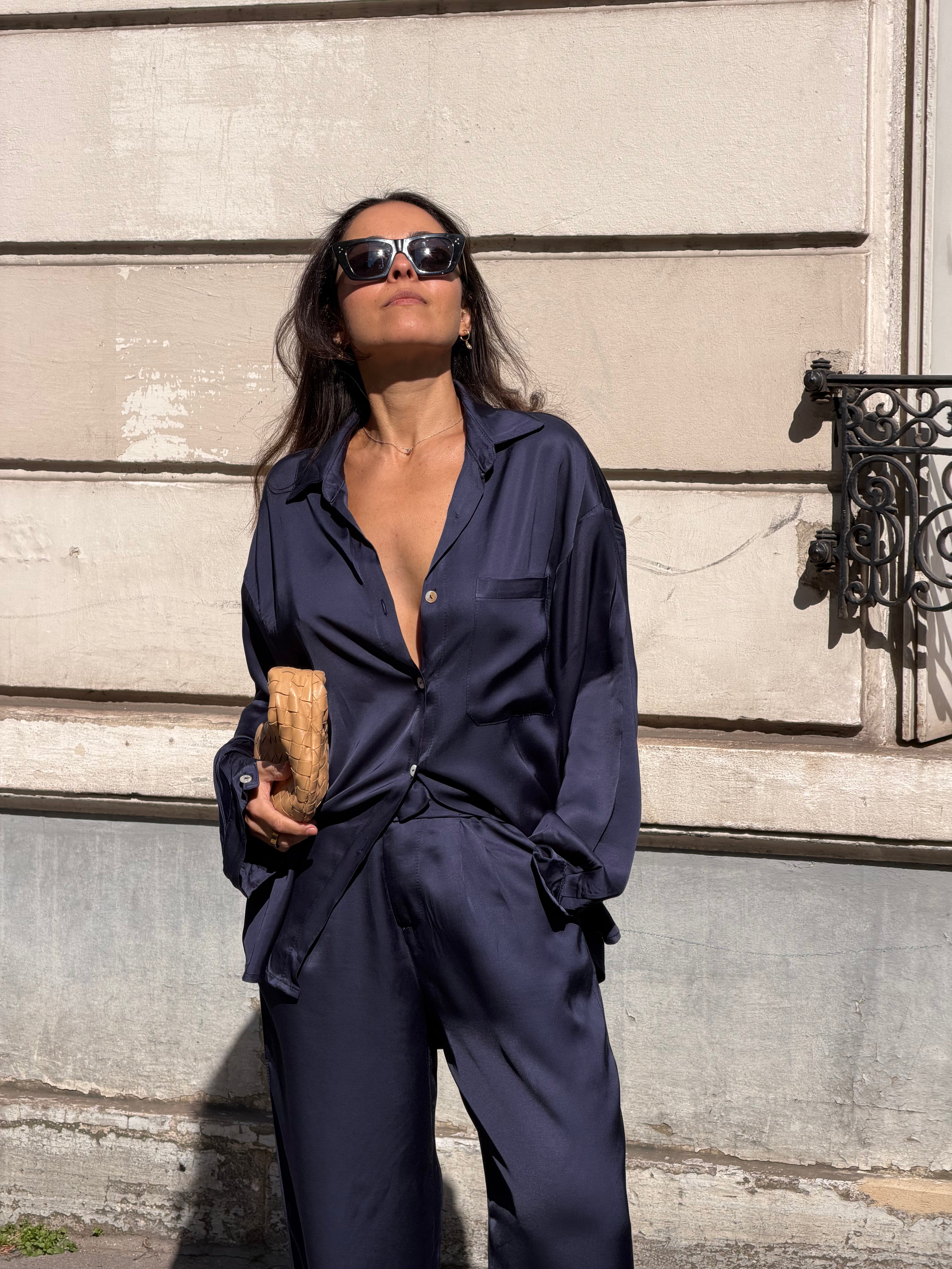 Lila Satin Shirt in Navy Blue